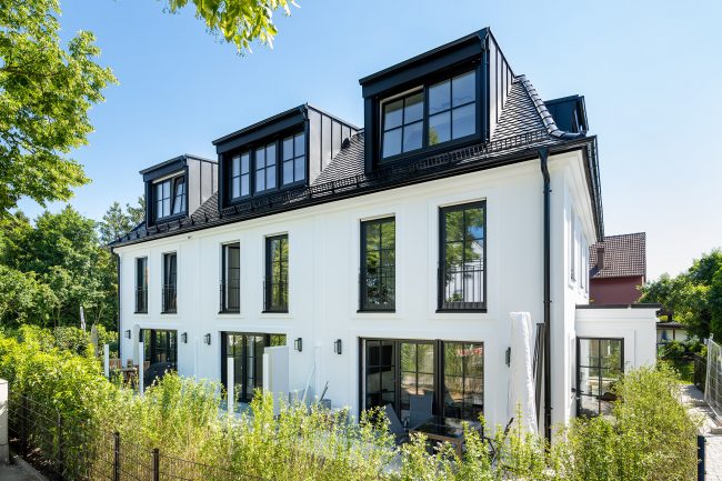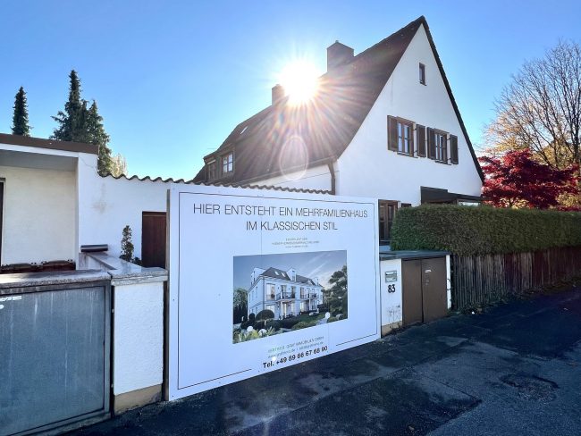 Nun ist es endlich soweit: Die Baugenehmigung unseres jüngsten Bauprojektes im Münchner Westen wurde im Juli erteilt und wir können nun mit dem Bau beginnen. Ebenfalls starten wir nun auch mit dem Vertrieb. In unmittelbarer Nachbarschaft unseres kürzlich fertiggestellten Projekts in der Bergsonstrasse 71 errichten wir auf diesem wunderschönen nach Süden ausgerichteten rund 600 m² großen Eckgrundstück in Obermenzing ein elegantes Mehrfamilienhaus im neoklassizistischem Stil. Entstehen werden insgesamt fünf großzügige Wohneinheiten zwischen 3 und 5 Zimmern und einer Tiefgarage für sechs Pkw-Stellplätze. Bei der Bauqualität sowie der Ausstattung legen wir auf Nachhaltigkeit und Exklusivität großen Wert. Die exzellente Lage bietet neben dem vielfältigen Freizeit- und Bildungsangebot auch eine perfekte Verkehrsanbindung: Bus, Bahn und jeglicher Bedarf des täglichen Lebens lässt sich von Ihrer neuen Wohnung aus fußläufig oder per Fahrrad erreichen.