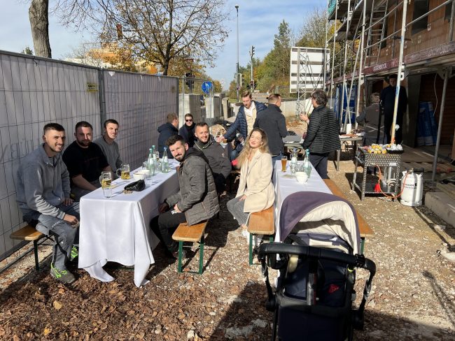 Richtfest in der Bergsonstrasse 71 Der Rohbau steht und der Dachstuhl wurde errichtet, so konnten wir gemeinsam mit unseren geladenen Gästen, Planern und Handwerkern, Nachbarn und Familien auf die großen Baufortschritte der drei Stadthäuser an der Bergsonstrasse 71 anstoßen und gebührend feiern. Nach dem traditionellen Richtspruch sorgte das Münchner Traditionshaus Käfer auch bei dieser Baustelle…